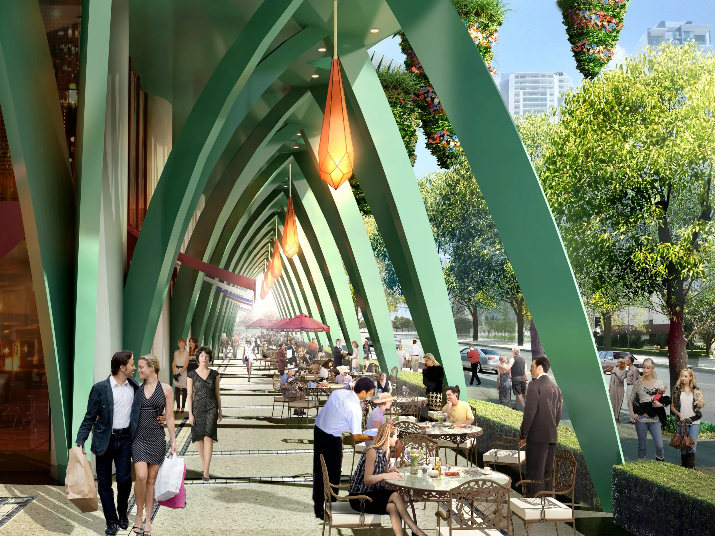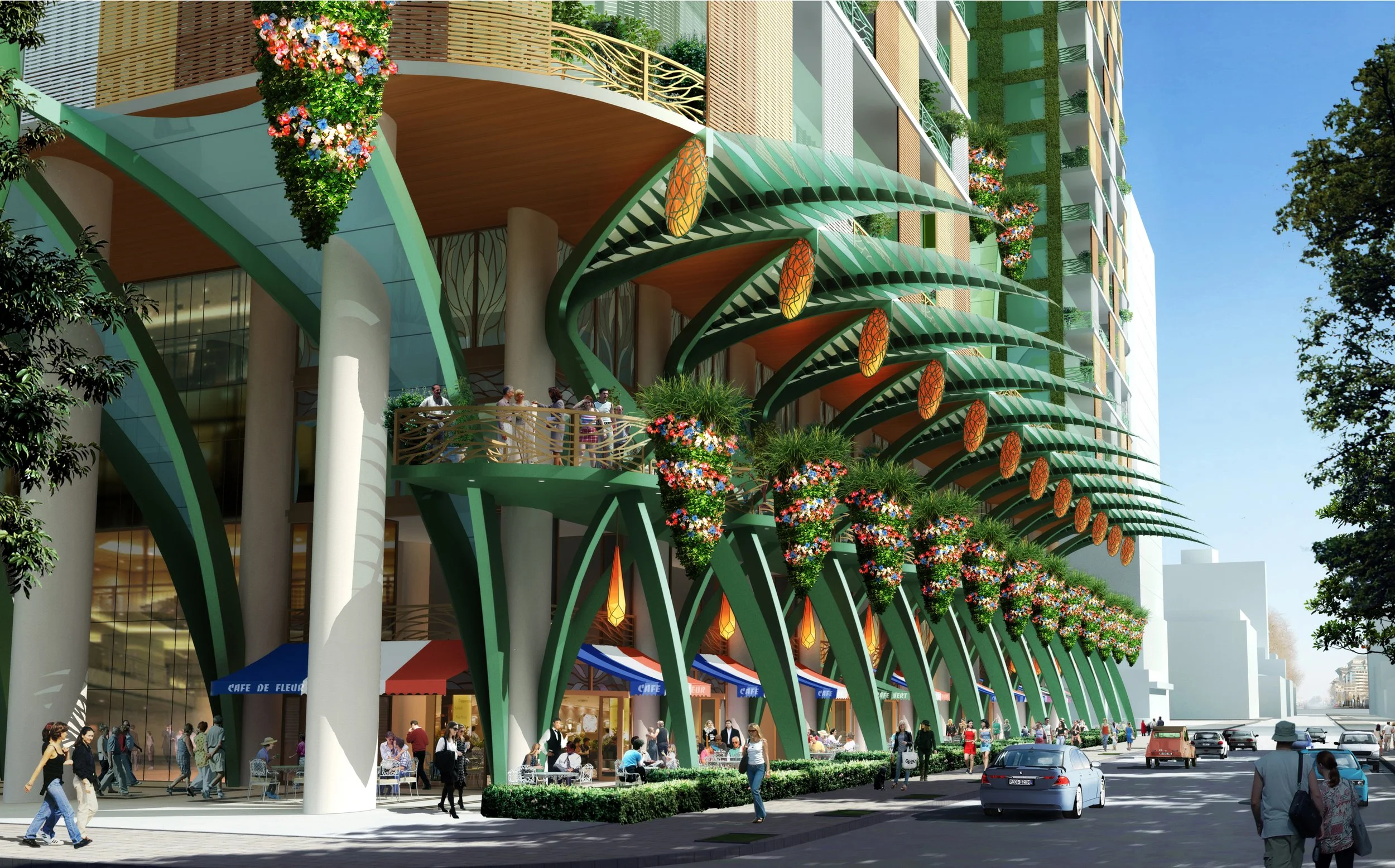 The French Quarter concept is a competition winning design for two new mixed use towers in Brisbane. Situated in the French Quarter of the city adjacent to the Botanical Gardens the street level evokes a French flavour with pavement cafes and a continental style incorporating forms derived from French Art Nouveau design, which is a synthesis of botanical form with the built environment.